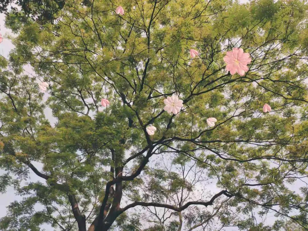 诗歌写作户外课上,老师安排的任务是四处找春天的“凭证”,写一首诗谜,让别人猜自己写的是什么。这节课在早八时段,阳光还带着凉意,大家倒不着急,七拐八绕地逛到老教授们的住宅区里来找花。