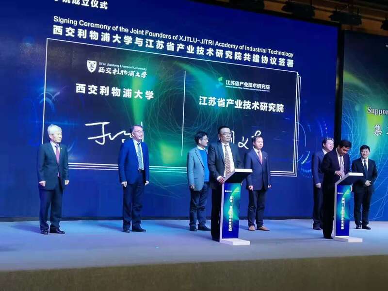 西交利物浦大学执行校长席酉民教授、江苏省产业技术研究院院长刘庆教授在成立仪式上发表主旨演讲。江苏产研院党委书记胡义东和西浦副校长丁忆民签署了双方共建协议。