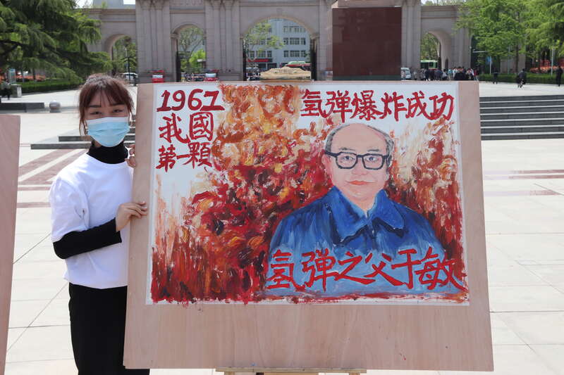 中国青年报客户端讯(中青报·中青网记者潘志贤 通讯员刘吉磊 陆张越)红船精神、抗美援朝、改革开放……4月13日上午,在河南师范大学图书馆广场上,百名身着白色T恤衫的学生们在画板前挥舞着画笔,一幅幅水粉画逐渐呈现,引来不少师生员工驻足参观。这是由该校美术学院正在主办的“忆峥嵘岁月,绘百年党史”活动现场。