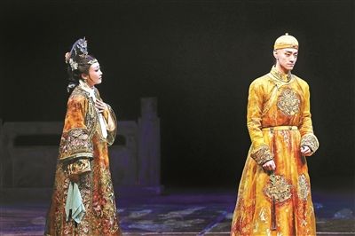 很少见到这样自我认知的老太后。而在后面一场慈禧和光绪的对话里,更让我觉得,对于绵密的人物关系,整部戏是做足了。故事发生在1904年,“戊戌变法”失败之后两人关系复杂而紧张,演员的表演功力也在这场戏里显露出来。慈宁宫一场以军机处的奏折开场,显示中国领土上的日俄战争战火纷纷,老太后和光绪还在重重宫墙里忍辱偷生——豪华的、悲哀的、各怀心事的。京剧唱段落下,慈禧对光绪步步紧逼,一开始是说他不和皇后亲近,没有完成延续皇室子嗣的任务,接下来,她开始回忆两人的相依为命。“也是这样一个有鸽哨的黄昏,乳娘把你抱进宫,你才四岁,看着只有两岁,气血不足,怯弱不堪,我让你睡在我宫里,跟我一张床,一夜我总得三四次看你,怕你冻着。”
