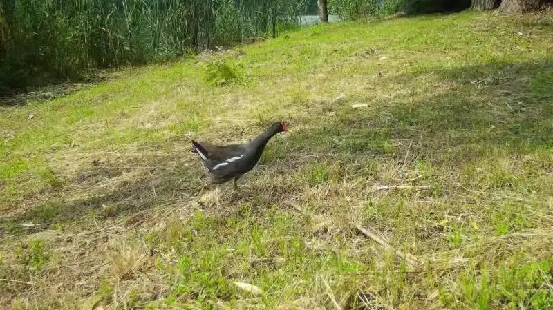 ▲漫步在江湾校区湖畔边的野生黑水鸡/图源:受访者