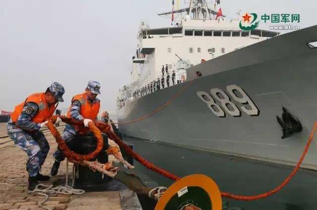 △舷号为889的“太湖”号综合补给舰