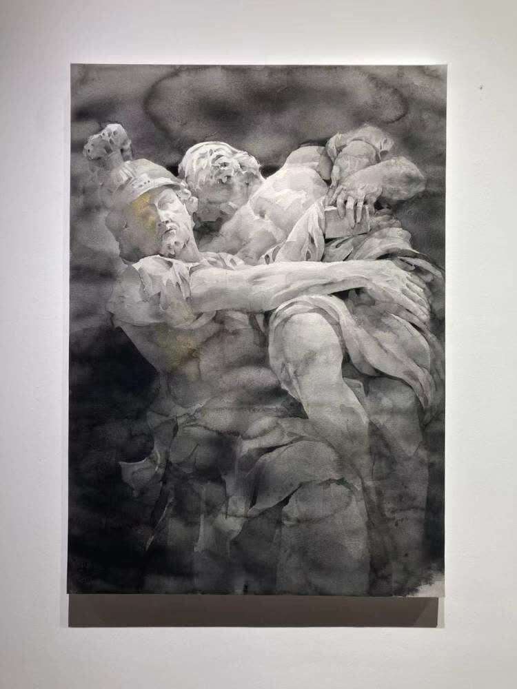 展览由普陀区美术馆与胡润艺术荟联合主办,展出艺术家杨建勇纸本作品的新作。无论是画作上的草木蔬果、飞禽游鱼,还是描摹西方石像以及太湖石,抑或人类在水波中若隐若现的背影,都集中表现疫情期间艺术家对人生的新思考。