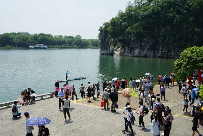 5月1日,广西桂林市象鼻山公园内游人如织。 中青报·中青网记者 谢洋摄