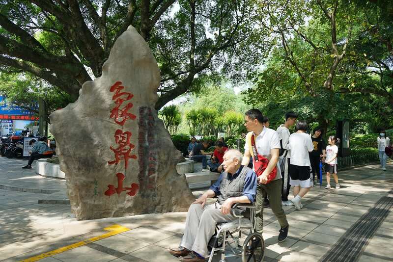 游客经过刻有象鼻山大字的石碑。 中青报·中青网记者 谢洋摄