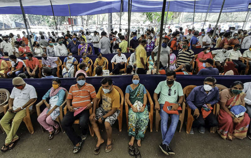 4月26日,众多市民戴着口罩在印度孟买排队等待接种新冠疫苗。新华社发