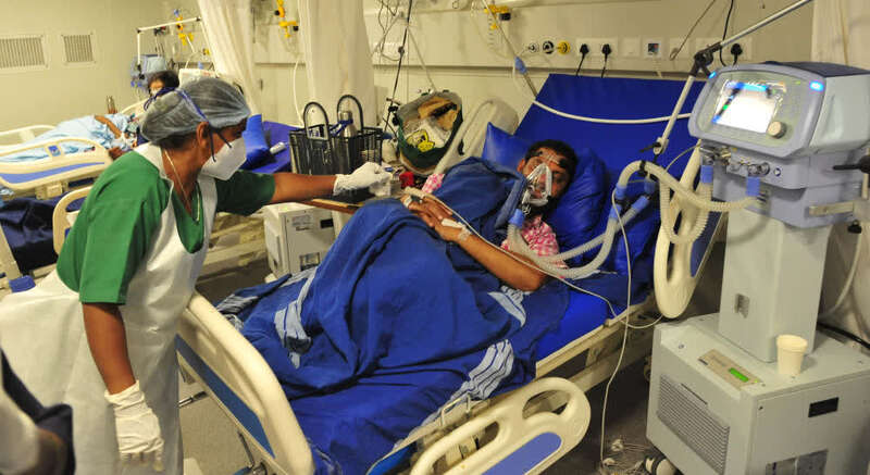 4月30日,新冠患者在印度班加罗尔的一家医院接受治疗。新华社发
