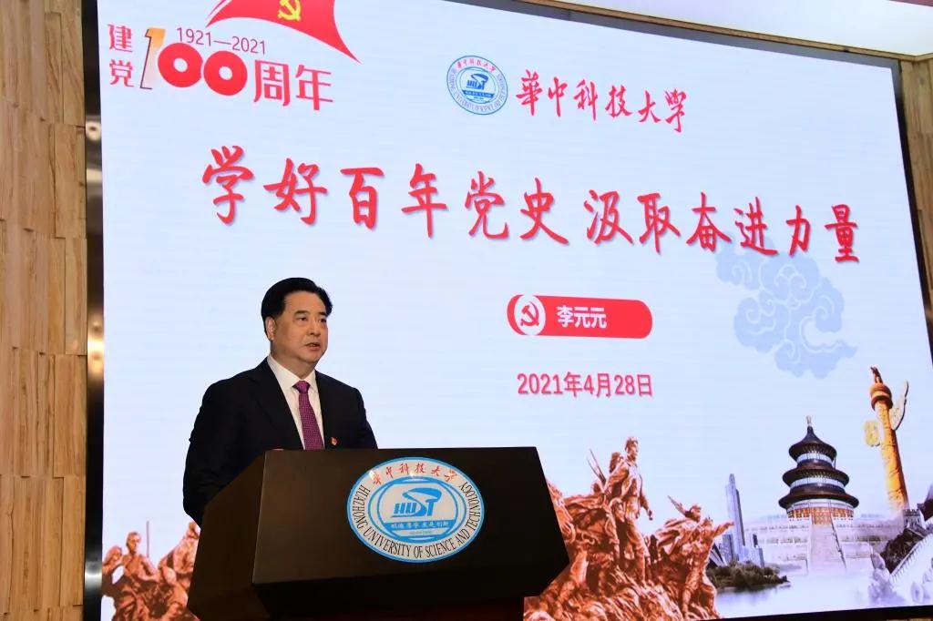 4月28日,校长李元元以“学好百年党史 汲取奋进力量”为题,传达习近平总书记在党史学习教育动员大会和考察清华大学的重要讲话精神,讲授党史大讲堂第四场报告会。校党委副书记马建辉主持报告会,校领导许晓东、梁茜、谢正学、张新亮、解孝林参加报告会。
