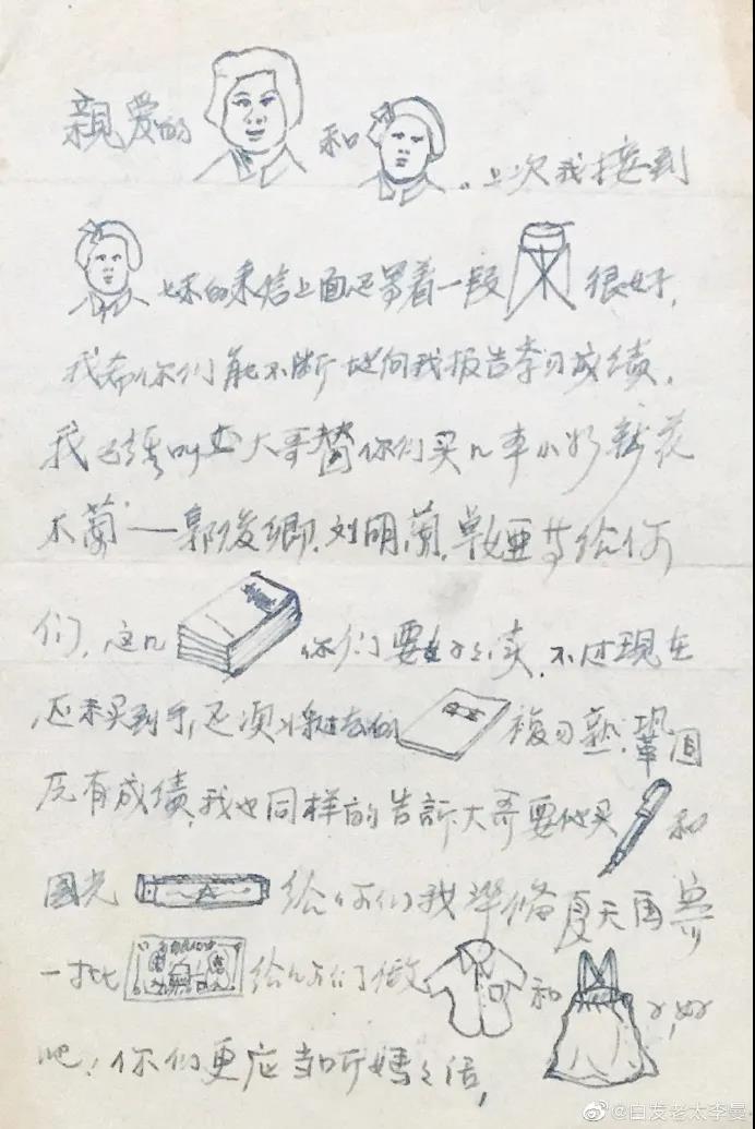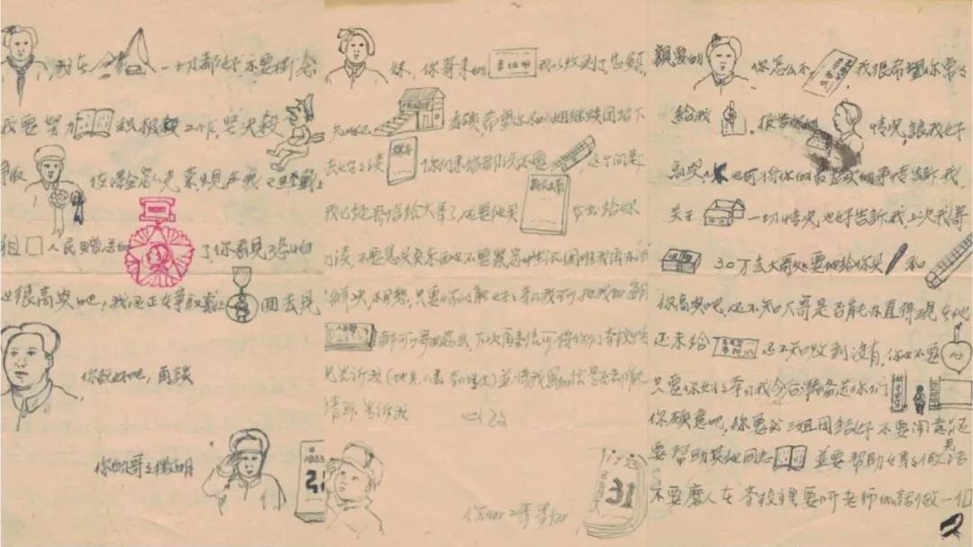 “二哥入伍那一年,我还在念小学二年级,已经认得一些字,但是读完整封信还是有些难。”李曼告诉记者,李征明从小学到初中毕业一直品学兼优,参军前做过当时区政府的文书。他会画画、会拉胡琴、歌唱得好,顺理成章进入部队文工团。“所以他把我可能不认识的字用‘简笔画’替代,特别用心。”