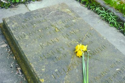 但很多人不知道的是,这座高大的纪念碑并非马克思最初的埋骨之地。最早的墓地在不远处一条小径边上,堙没在众多维多利亚时期的墓碑之中,并不十分好找。1883年3月17日,马克思去世后三日,被安葬在燕妮的墓旁。这块墓地当年由挚友恩格斯出钱买下,先是燕妮与马克思,后来他的一个外孙、两个女儿也陆续葬在这里。