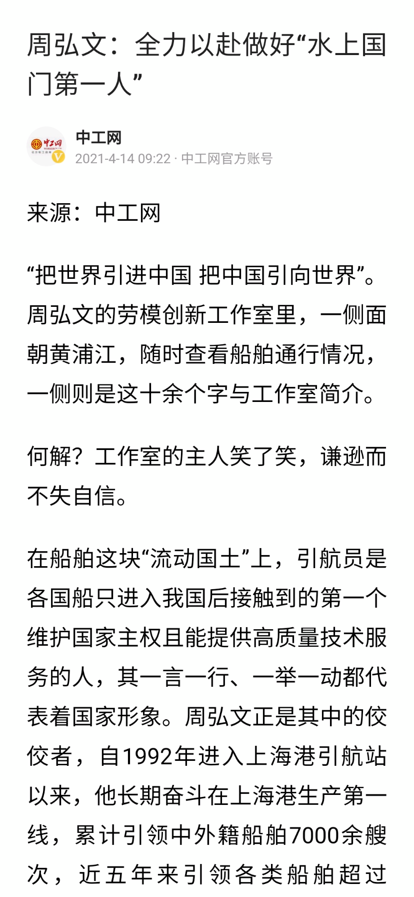 周弘文,上海港引航站高级引航员,全国先进工作者,上海海事大学航海88级校友。