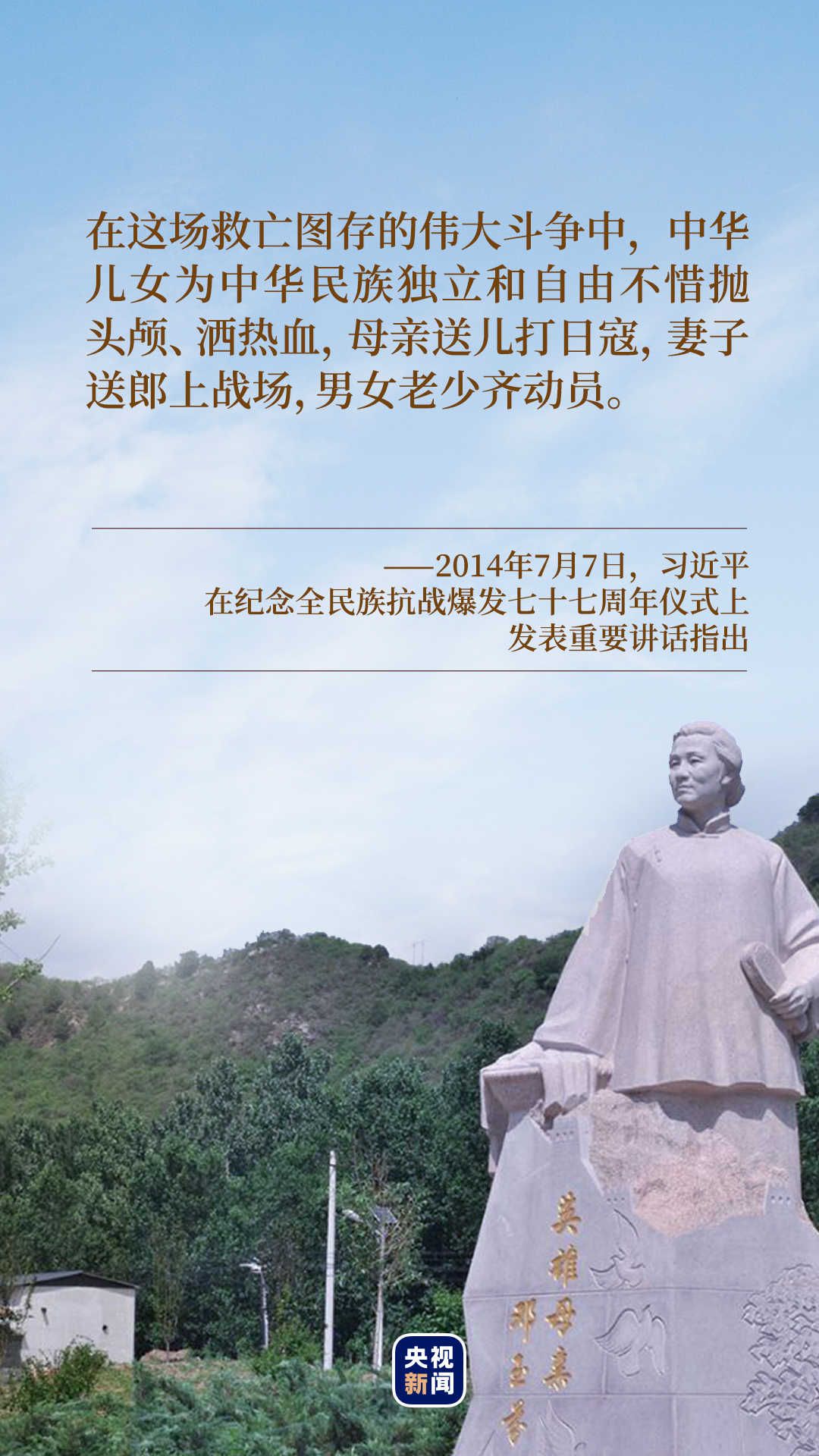 “北京密云县一位名叫邓玉芬的母亲,把丈夫和5个孩子送上前线,他们全部战死沙场。”2014年7月7日,在出席纪念全民族抗战爆发七十七周年仪式并发表重要讲话时,习近平总书记讲述了英雄母亲邓玉芬的故事。