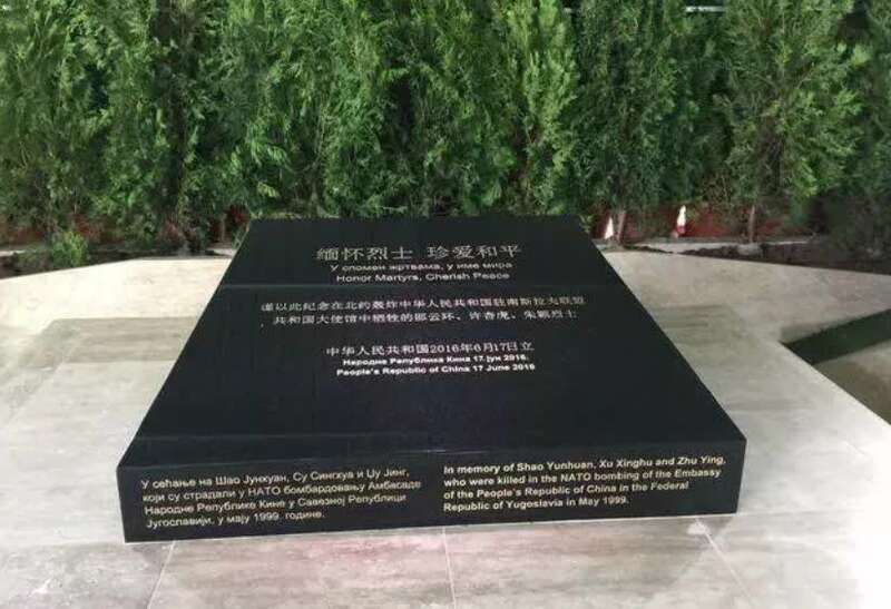 当地时间2016年6月17日下午,习近平主席和夫人彭丽媛,前往中国驻南联盟被炸使馆旧址,凭吊在我国驻南联盟使馆被炸事件中英勇牺牲的烈士。