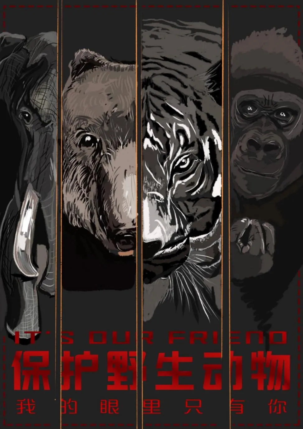 “还记得动物们因为人类隔离在家,才敢来玩耍的新闻吗?有没有人知道到现在为止我们失去了多少物种?”陈永兴也把这种焦虑和思考用画面表现出来,创作了公益海报《我的眼里只有你》。他认为,保护野生动物是一项持续的公益活动,这次疫情的爆发更让我们清楚了人与自然和谐相处的重要性。他用手绘画出动物们渴望生存的眼神,呼吁人类明白,世界是我们共有的,请善待每一种生灵。