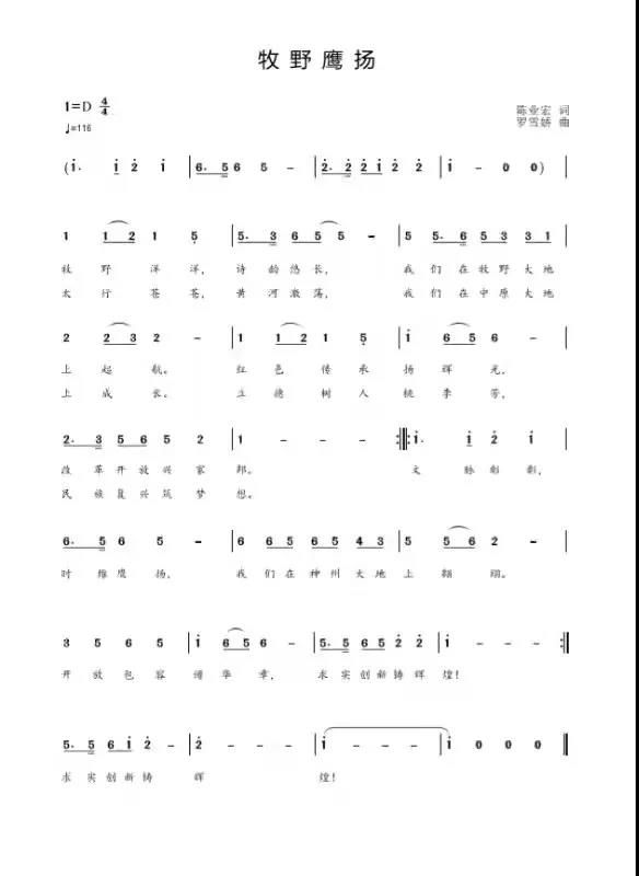 新乡学院的校歌《牧野鹰扬》融入了“牧野洋洋,诗韵悠长”的中原风情,和“民族复兴铸辉煌”的新时代精神,鼓励着我们要积极地发扬继承中原文化,同时也要与时俱进地学习新思想。