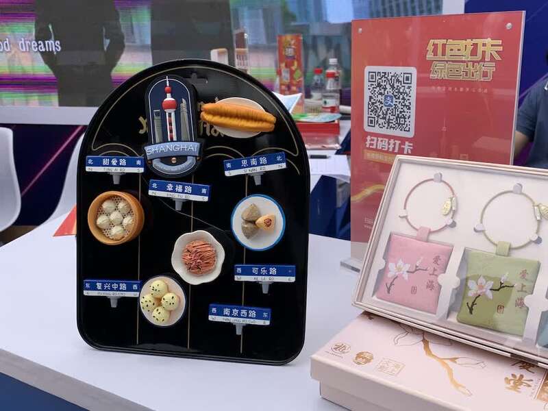 在红色文创展区,以渔阳里石库门建筑为灵感设计的立体便签、“一大会址”纸雕灯、英雄钢笔红色套装、“奋进100”红色酥饼礼盒、左联“光·亮”日历等产品吸引游客注目。