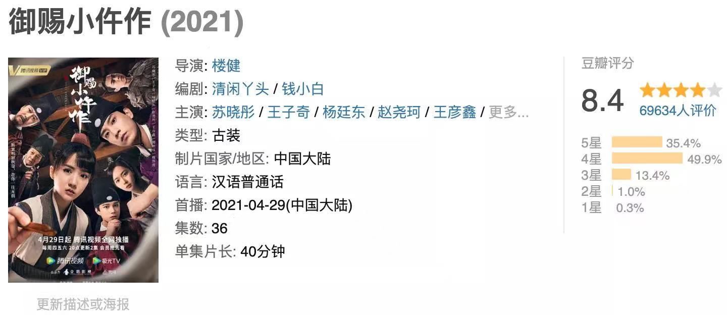 ▲ 豆瓣上,近7万人给《御赐小仵作》打出8.4高分
