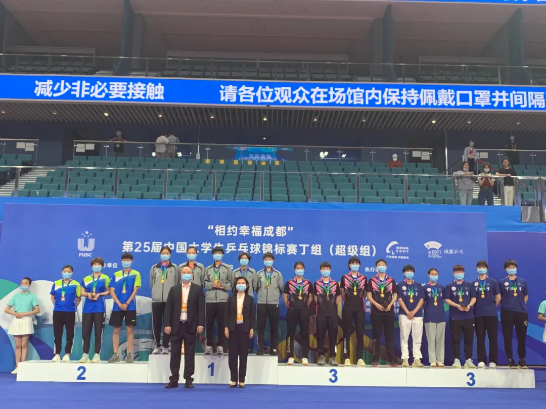 经过3天的鏖战,我校乒乓球女队在决赛中战胜了吉林大学获得“相约幸福成都”第25届中国大学生乒乓球锦标赛丁组(超级组)女子团队冠军。 男队最终不敌东道主成都体育学院代表队获得 男子团体亚军。