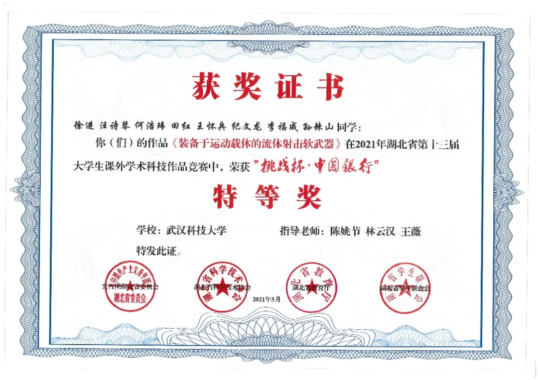 武科大在湖北省“挑战杯”竞赛中