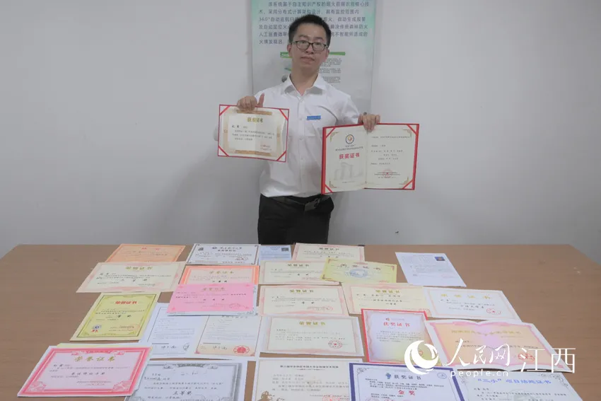 刘鑫和他所获荣誉与专利(刘起福/摄)