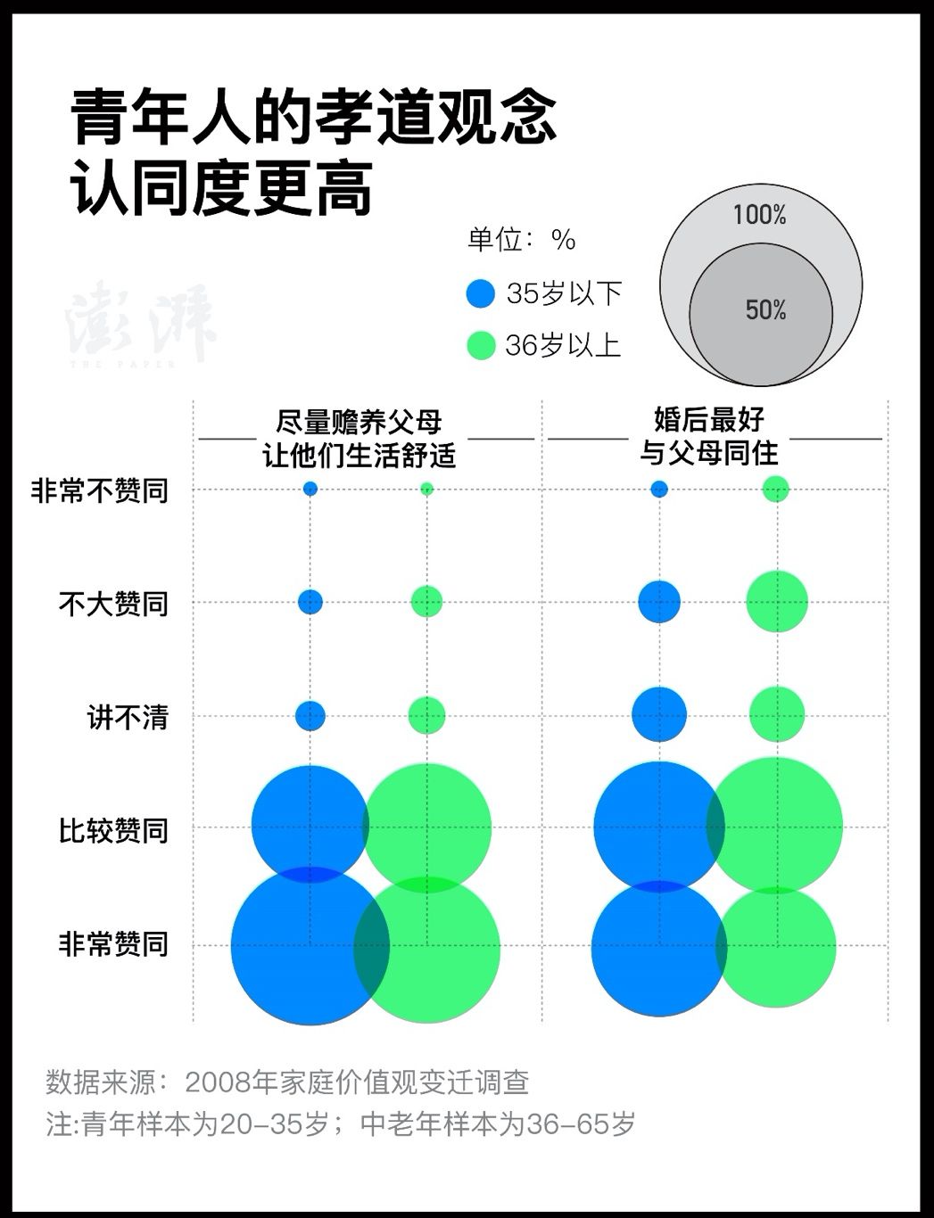 青年人的孝道观念认同度(比中老年)更高 澎湃新闻 王煜 制图