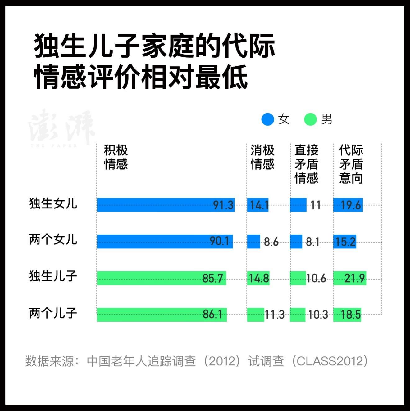 独生儿子家庭的代际情感评价相对最低 澎湃新闻 王煜 制图