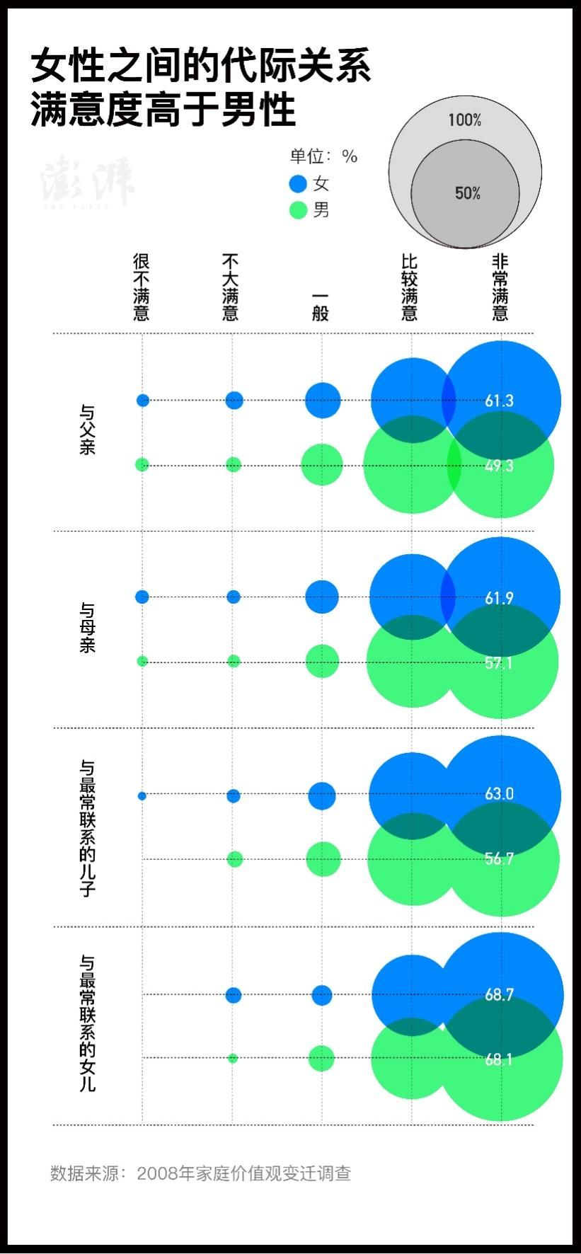 女性之间的代际满意度高于男性 澎湃新闻 王煜 制图