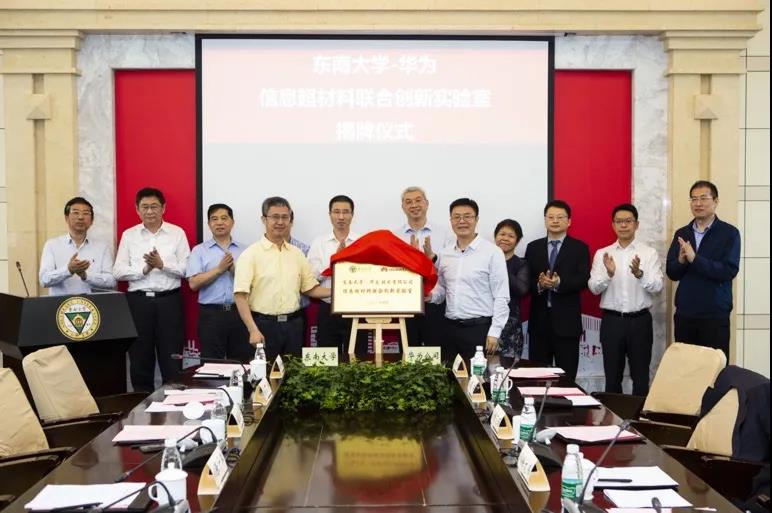 随后,崔铁军院士和华为2012无线技术实验室执行主任卢建民为信息超材料联合创新实验室揭牌。