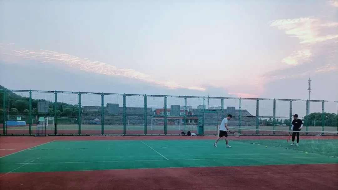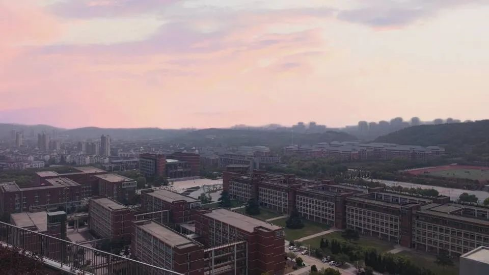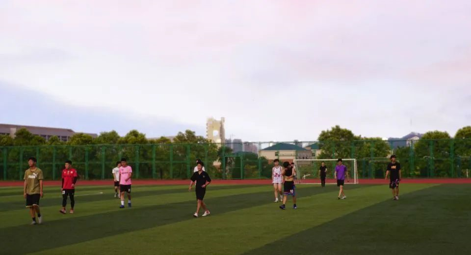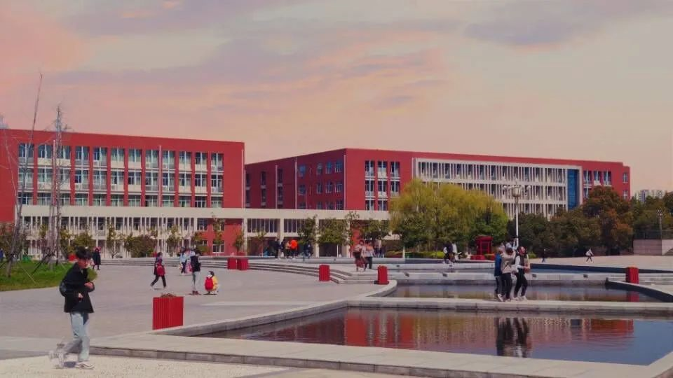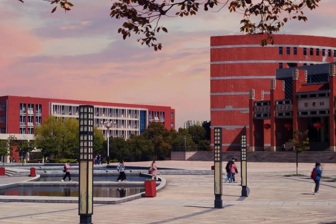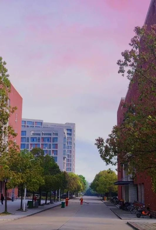 晚霞余晖下,学子们匆匆赶路。光芒柔和,尽管没有耀眼夺目,也十分静谧和谐。
