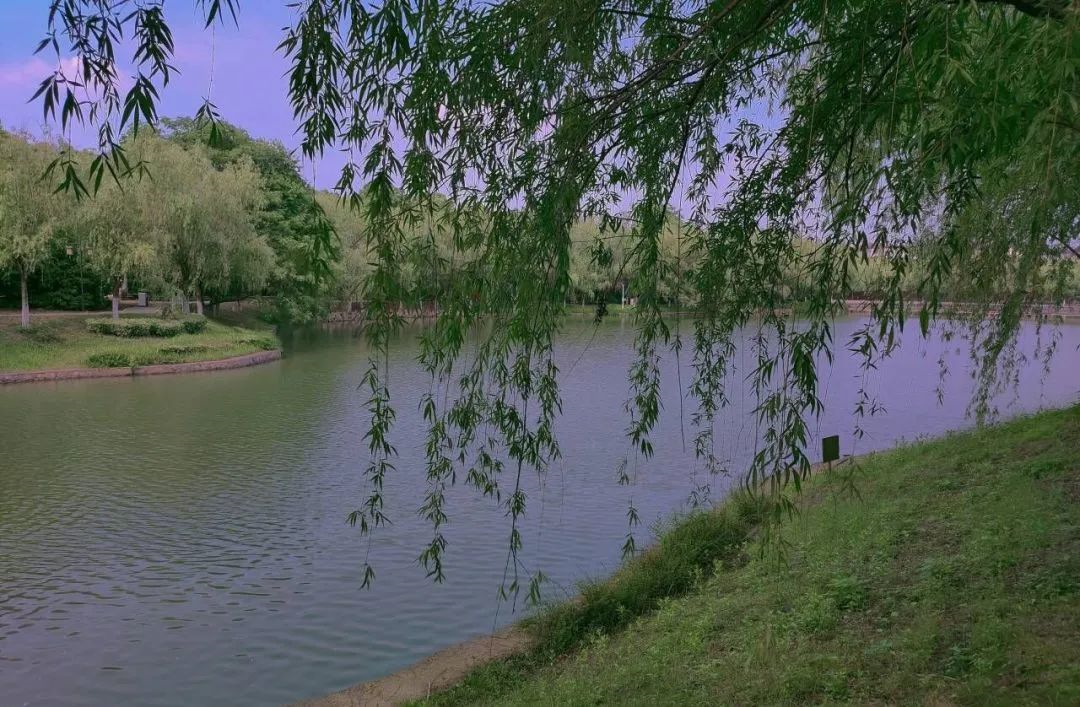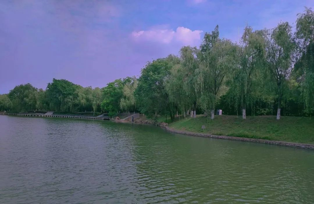 知明湖隐遁在暮霭深处,余晖在水面上编织着橘子味的晚霞,明月带着浪漫,悠悠荡漾,晕染开来,湖面被渲染成梦幻的颜色。