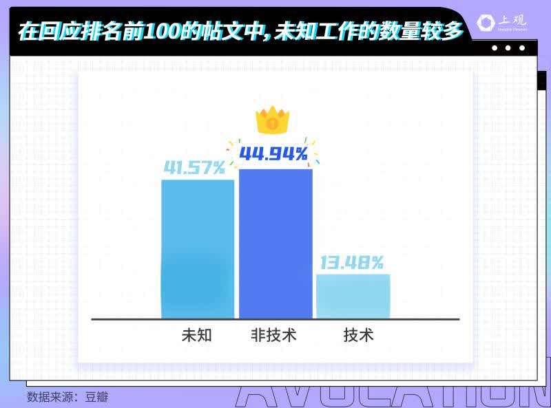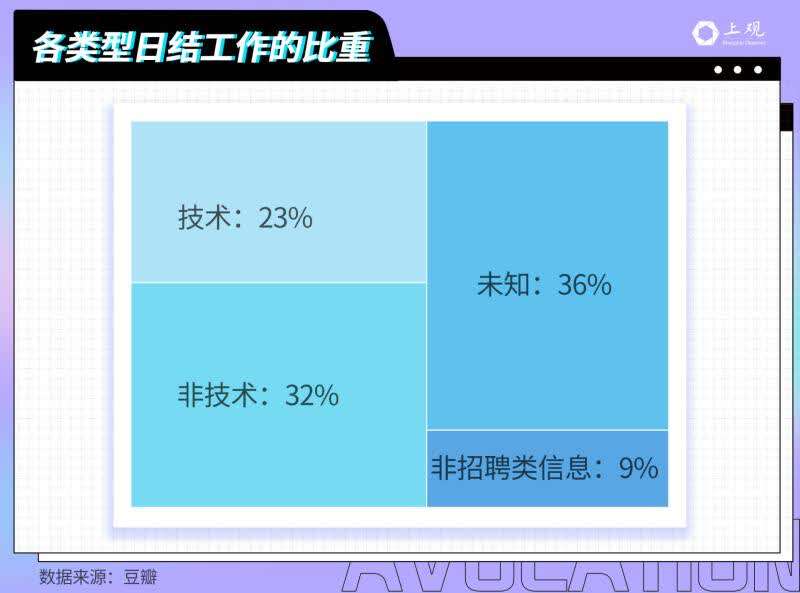 这些工作大致可分为两类,技术型与非技术型。其中,非技术型的需求量较大,约占32%。