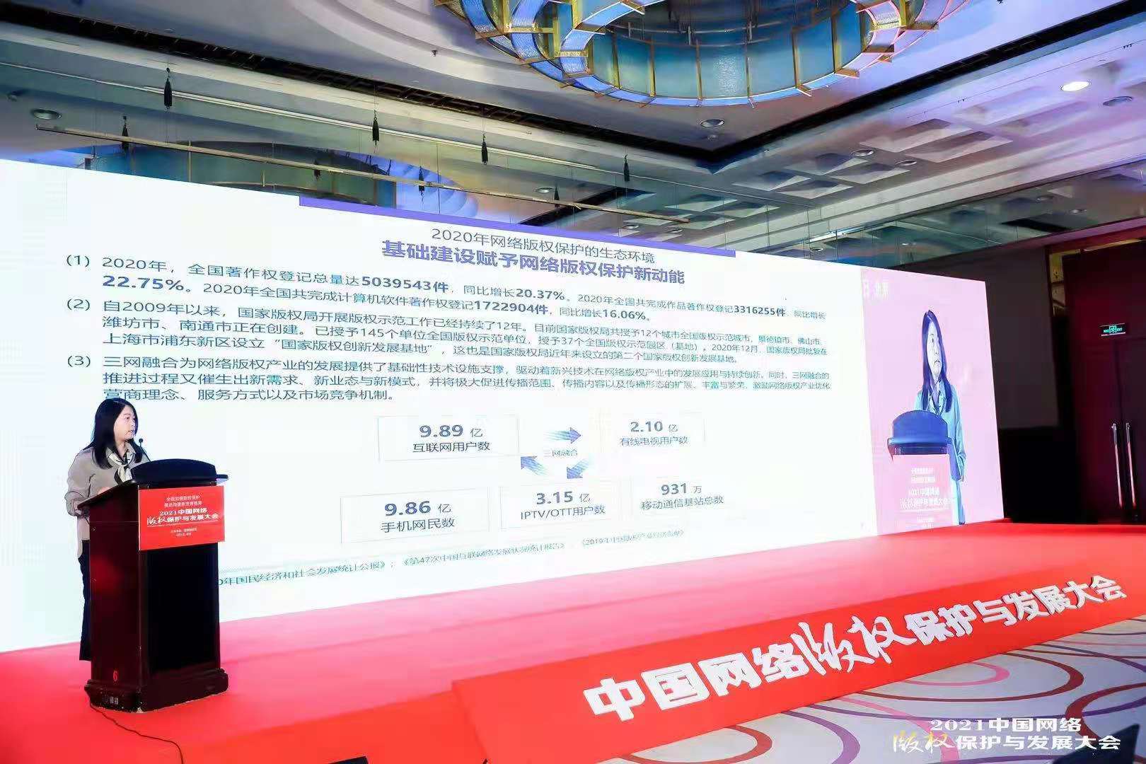 中国青年报客户端北京6月1日电(中青报•中青网记者吴晓东)新修订的《中华人民共和国著作权法》实施之际,国家版权局在今天举办的“2021中国网络版权保护与发展大会”上发布了《2020年中国网络版权保护报告》。报告指出,2020年是我国“十三五”规划收官之年,在全球新冠肺炎疫情影响下,以短视频、云游戏、网络直播、虚拟演绎为代表的新业态、新传播逆势爆发,5G、人工智能、云计算的创新技术和应用不断涌现,网络版权保护事业迎来了新的机遇和挑战。