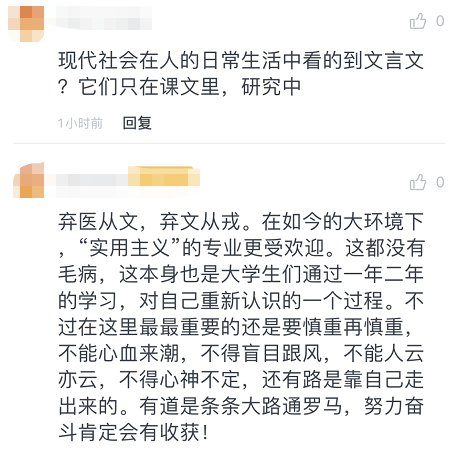 如今的大环境下,“实用主义”的专业更受欢迎。医学院的学生要转中文系,其实是很让人感叹的。他把这封信拍照发到朋友圈,有了不少评论点赞:“这是要弃医从文啊!”