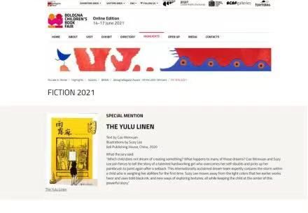 2021年6月1日,由中国作家曹文轩和韩国画家苏西·李联手创作,接力出版社出版的《雨露麻》荣获意大利博洛尼亚童书展最佳童书奖“虚构类特别提名奖”。本书是博洛尼亚童书展最佳童书奖1966年设立以来,首部获奖的中国大陆原创作品。同时,接力出版社已引进的图书《分类之书》和《棉花糖和大怪兽》分别荣获“非虚构类大奖”“漫画类(低龄段)大奖”。