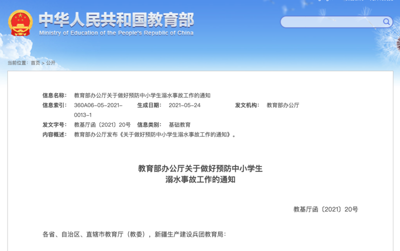 通知强调,各地要紧盯安全责任落实,将防溺水工作情况纳入教育质量评价和教育行政、学校校长和教职工工作考评,作为评优评先先决条件。要加大防溺水工作责任追究力度,对履行预防溺水职责不认真、部署预防溺水工作不及时,造成重大溺水事故的相关单位和责任人,要依法依规严肃追责问责。