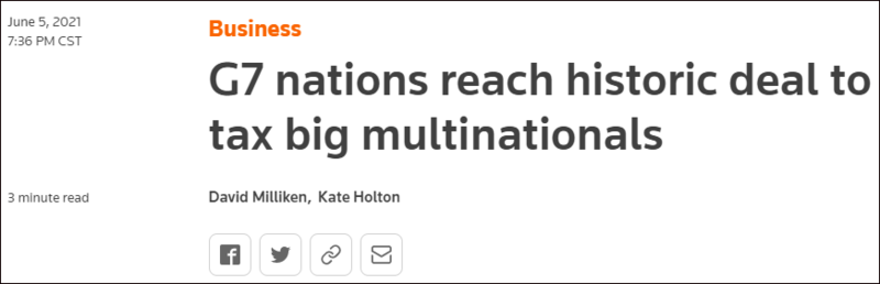路透社认为,设定全球最低企业税率后,企业将难以转移到税率较低的地区谋取更多利润;与此同时,此举还可以为富裕国家获得更多税收,以弥补新冠疫情对各国造成的经济损失。
