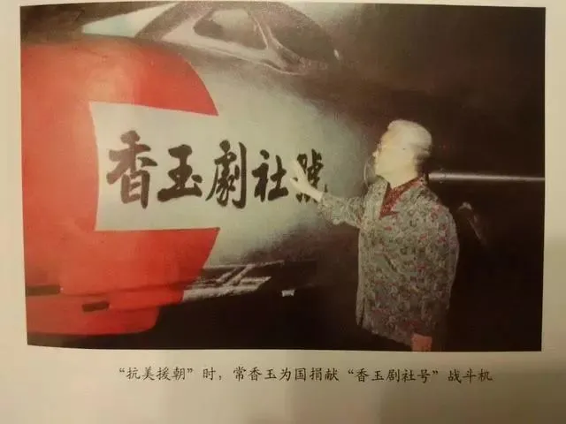 一个月之后,一架苏制米格15战斗机飞上了朝鲜战场上空,中国人民志愿军空军驾驶着这架战斗机穿云破雾,搏击敌寇,飞机机身上赫然喷涂着5个字:香玉剧社号。