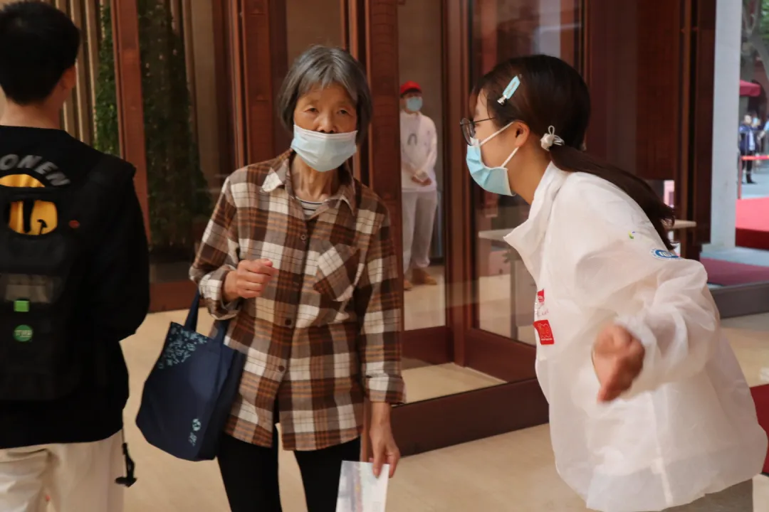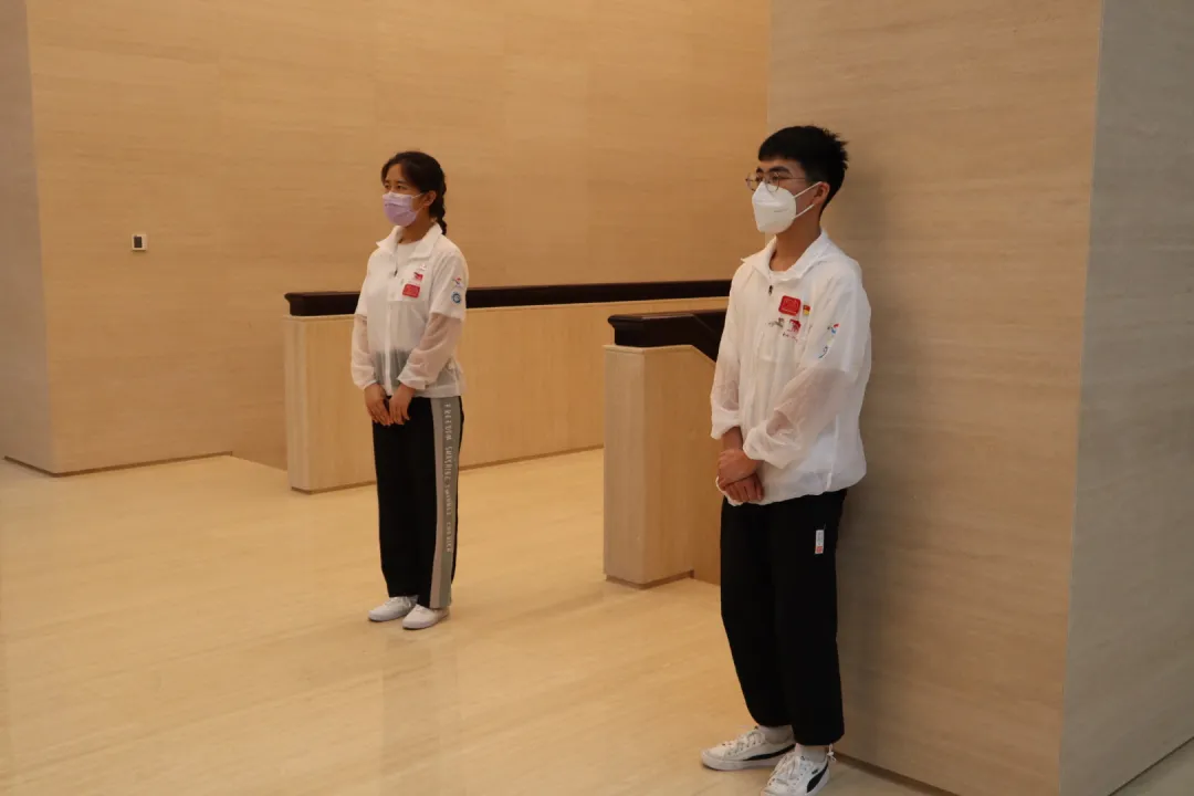 他们将学校学习的实务经验反馈于志愿服务中去,认真履行岗位职责。当遇到观众拍照的情况,他们会善意提醒禁止拍照;当遇到老人活动不便时,他们会上前主动帮扶。长时间站在馆内,虽是四肢酸痛,但他们也不曾松懈。随着最后一批观众的离馆,志愿者们的上岗服务也圆满结束。