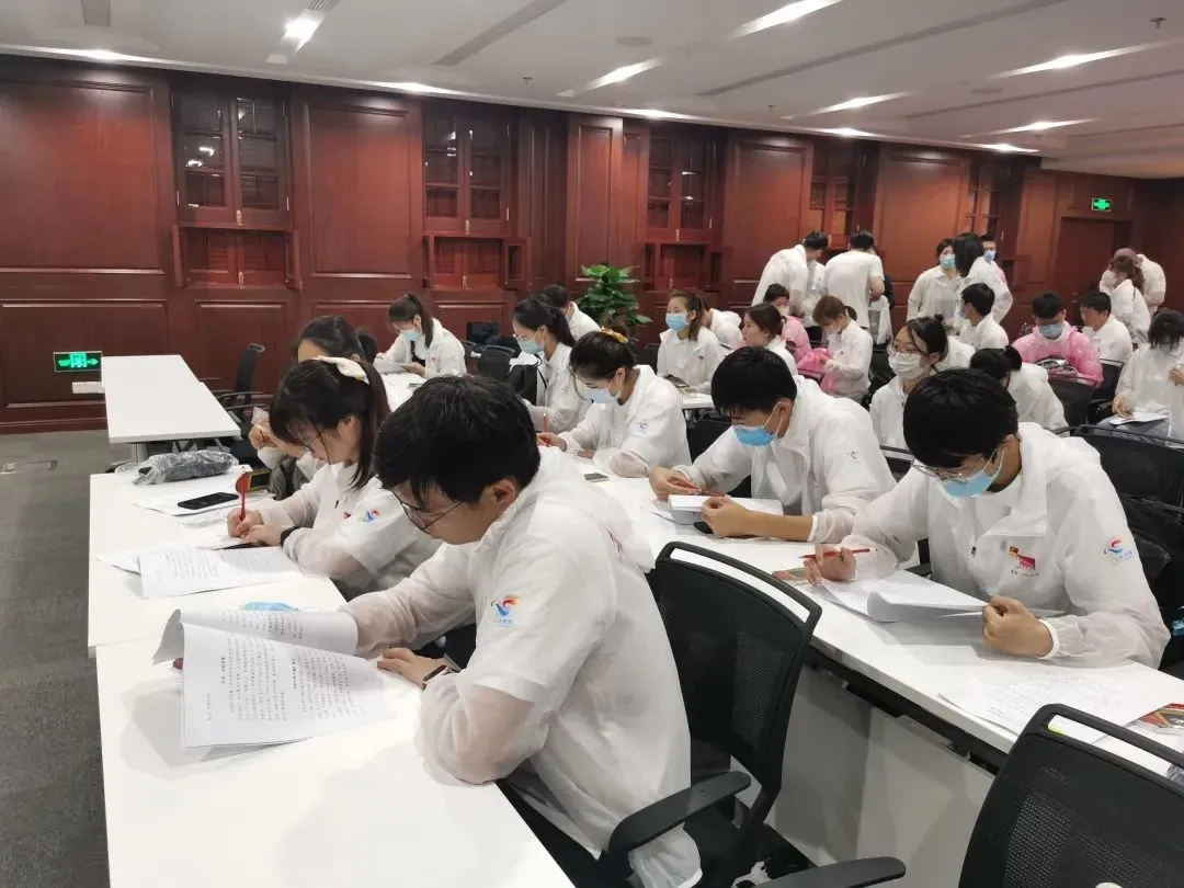 为确保服务质量,志愿者们提前参与了岗前志愿服务培训。5月22日,志愿者们抵达中共一大纪念馆,领略百年会址新面貌,熟悉服务场地。志愿者们本着敬畏、认真的态度, 深入了解宣教岗位服务说明,以达到分工明确、任务清晰。5月23日,志愿者们整装出发,一早赶至中共一大纪念馆,并在初心讲堂继续巩固学习场馆介绍、导览图等志愿服务内容。