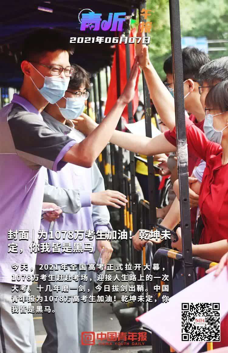 今天,2021年全国高考正式拉开大幕,1078万考生赶赴考场,迎接人生路上的一次大考。十几年磨一剑,今日拔剑出鞘。中国青年报为1078万高考生加油!乾坤未定,你我皆是黑马。详情>>