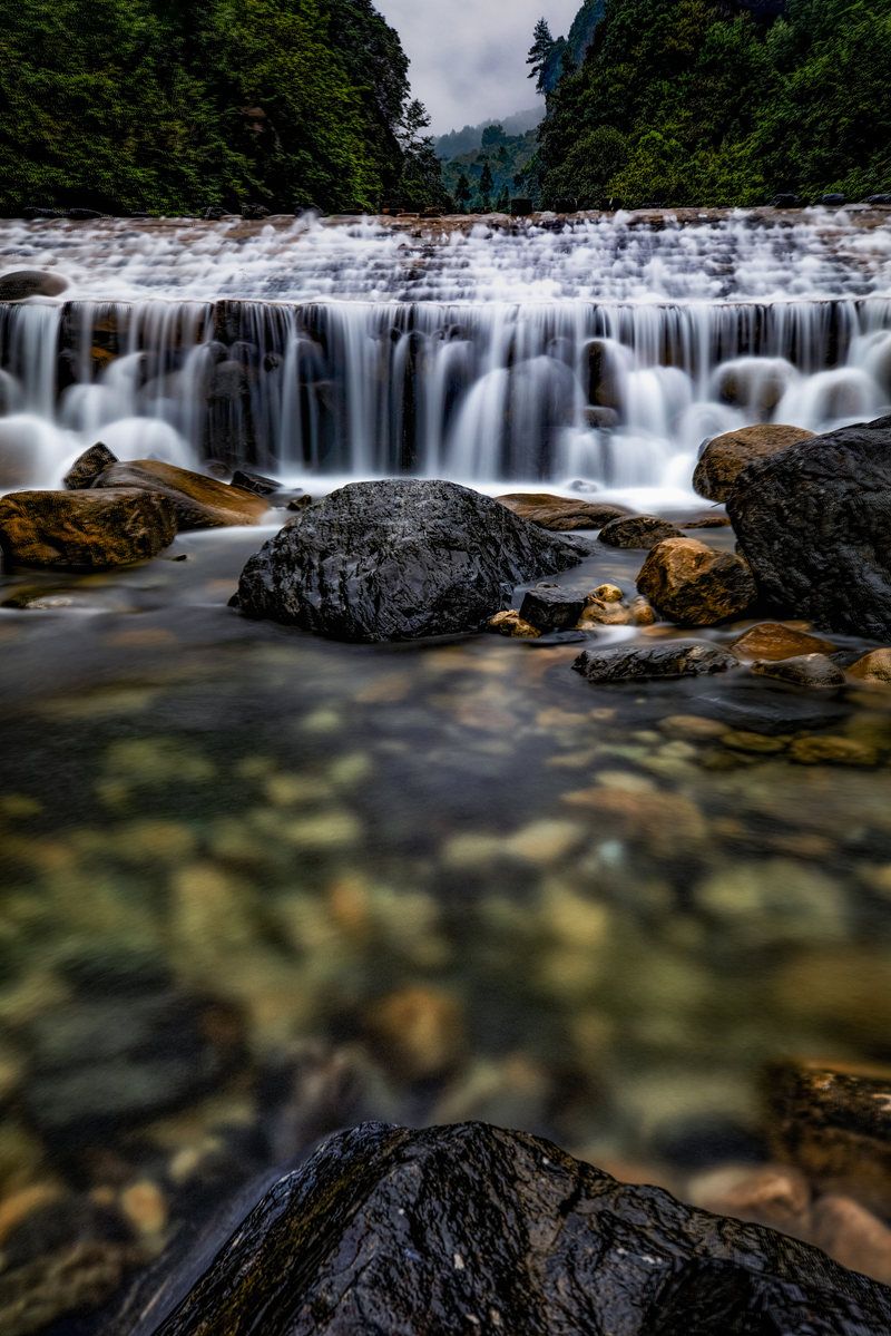 ↑牯牛降景区,山顶云雾飘渺,山下清泉叮咚。 视觉中国 图