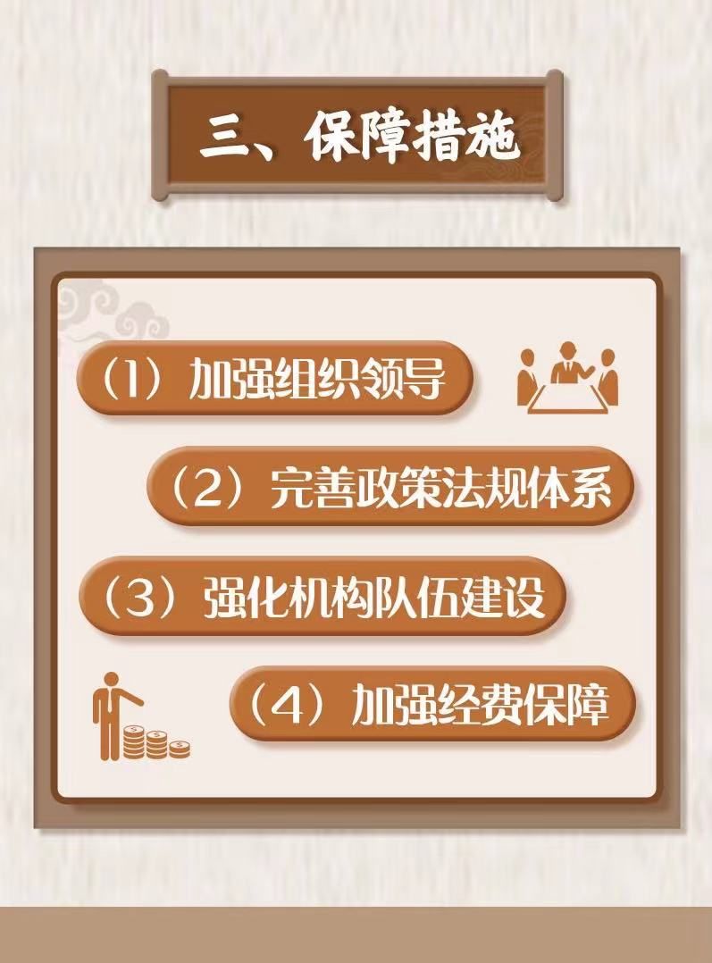 《规划》从加强组织领导、完善政策法规体系、强化机构队伍建设、加强经费保障4个方面保障各项措施的落实,推动形成有利于非遗保护传承的体制机制和社会环境。