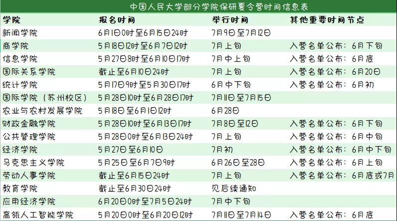 Rucers保研夏令营的重要时间节点信息(数据来源:中国人民大学各学院公众号平台)
