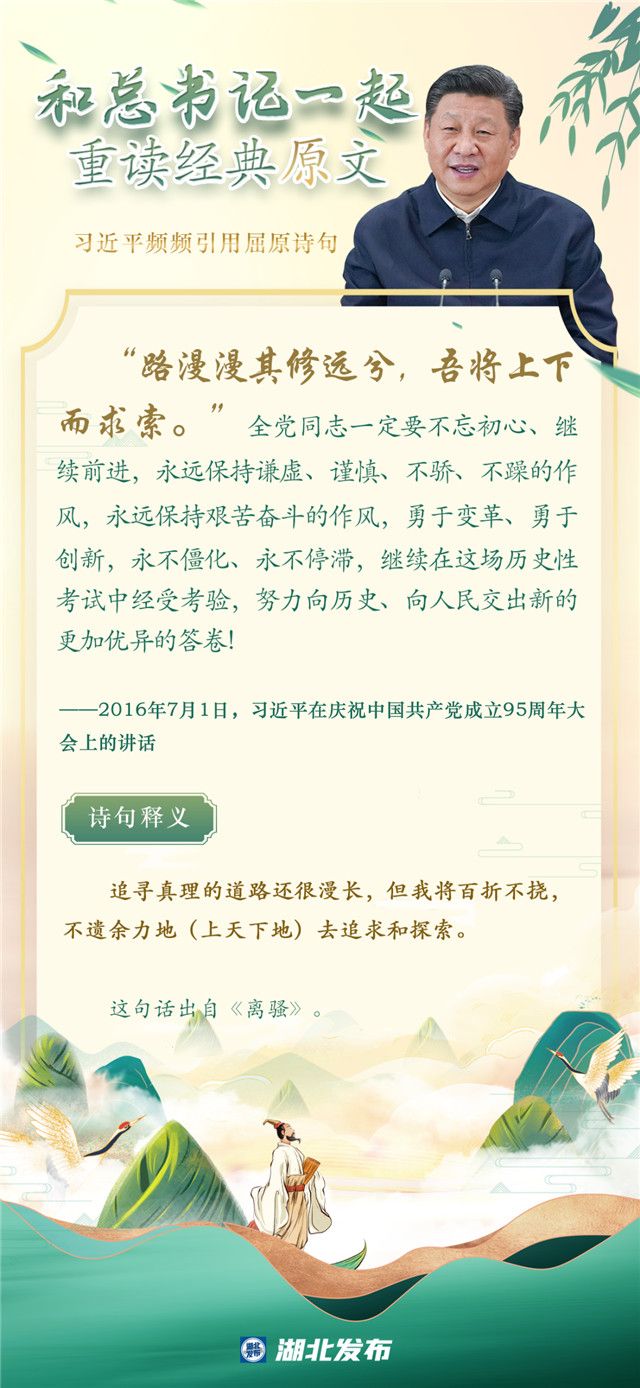 跟着习近平总书记一起纪念屈原,使爱国情怀变成报国行动,用民本思想指引实践,让求索精神创造价值,在实现中华民族伟大复兴中国梦的大道上一路前行,百折不挠!
