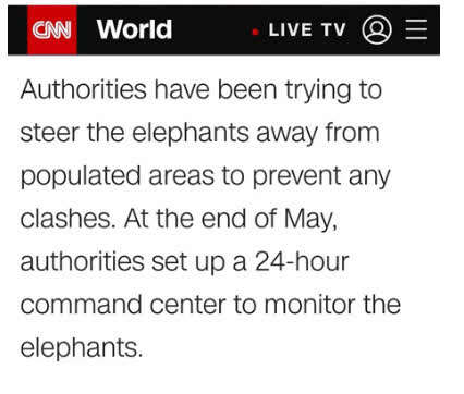 ▼▼▼美国CNN报道称,为了防止任何人象冲突,中国甚至建立了一个24小时指挥中心来监控大象行踪。