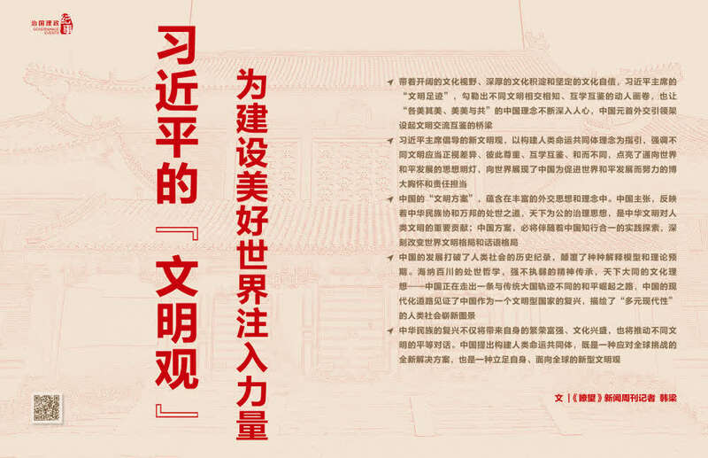 ◆ 中国的“文明方案”,蕴含在丰富的外交思想和理念中。中国主张,反映着中华民族协和万邦的处世之道,天下为公的治理思想,是中华文明对人类文明的重要贡献;中国方案,必将伴随着中国知行合一的实践探索,深刻改变世界文明格局和话语格局