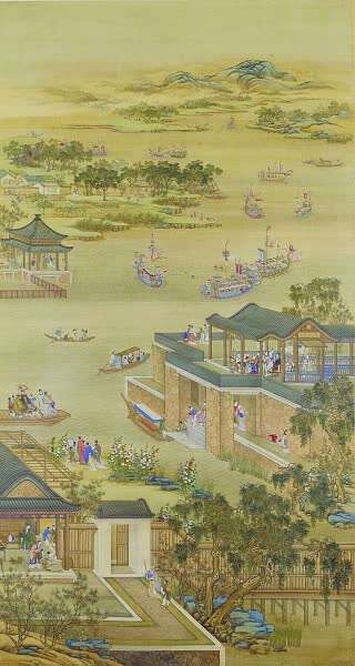 清《雍正十二月行乐图》轴之《五月竞舟》(局部),故宫博物院藏。资料图片