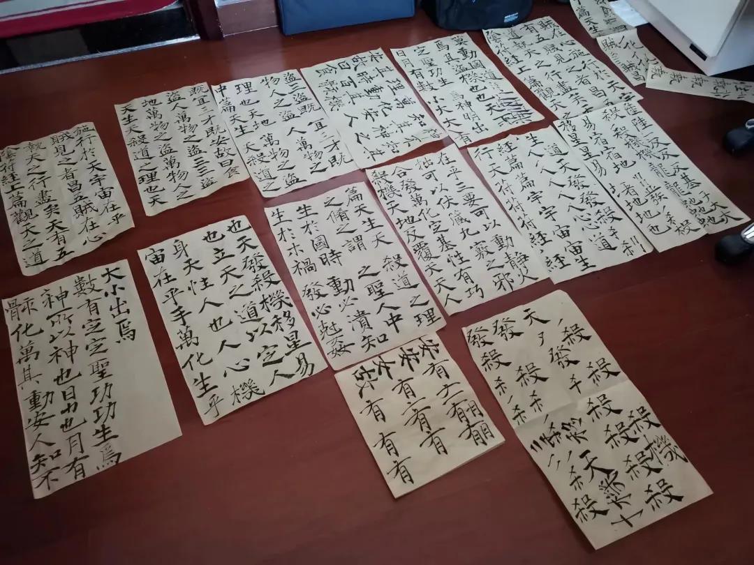 我孜孜不倦地写着,沉浸在白纸黑字的世界里,直到背酸颈痛,才发现夕阳的余晖已悄然洒满纸张……书法在耳熏目染中已经成为了我的一项重要兴趣,一个生活中不可被分割的部分。从那以后,凡是在情绪低落的时候,只要能坐在桌前舀水、研磨、润笔,在墨香氤氲之中不动声色地看笔毫于纸上游丝般滑动,胸中的愁焰顿时化作一道青烟飘向九霄。