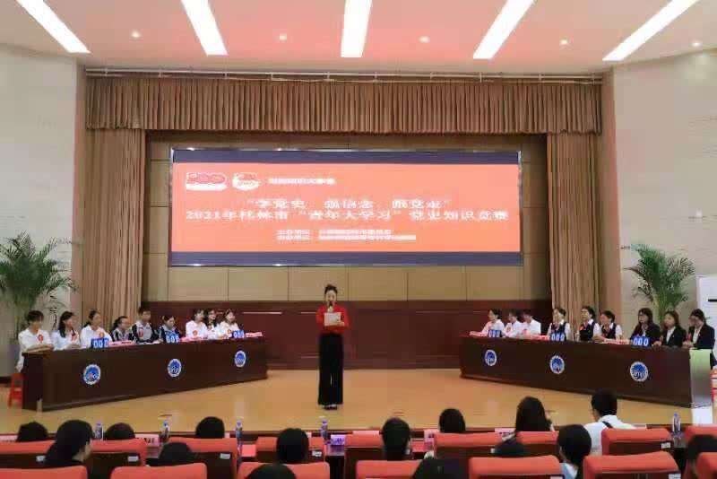中国青年报客户端讯(中青报·中青网记者 谢洋)由团桂林市委、桂林师范高等专科学校团委联合举办的“学党史、强信念、跟党走”——2021年桂林市“青年大学习”党史知识竞赛,日前在桂林师范高等专科学校报告厅举行。团桂林市委副书记刘俊、桂林师范高等专科学校团委书记伍红梅参加活动并为获奖队伍颁奖。