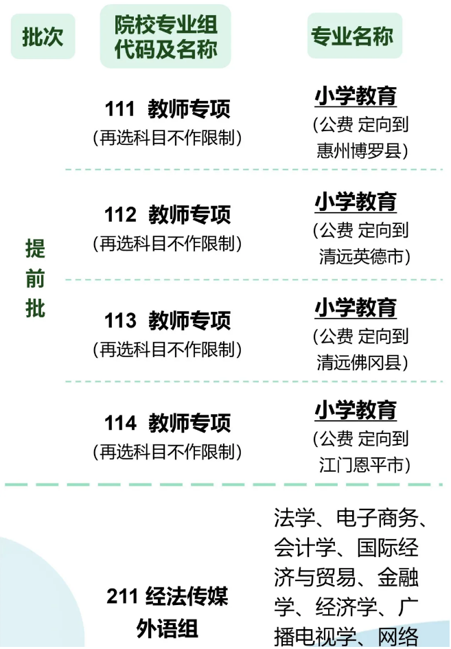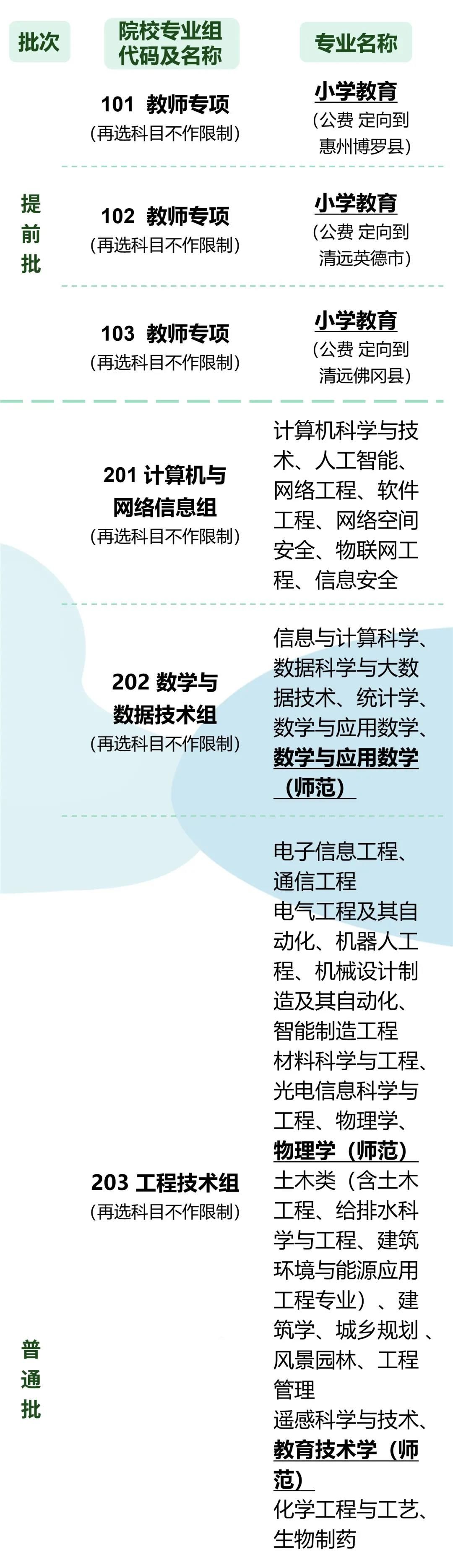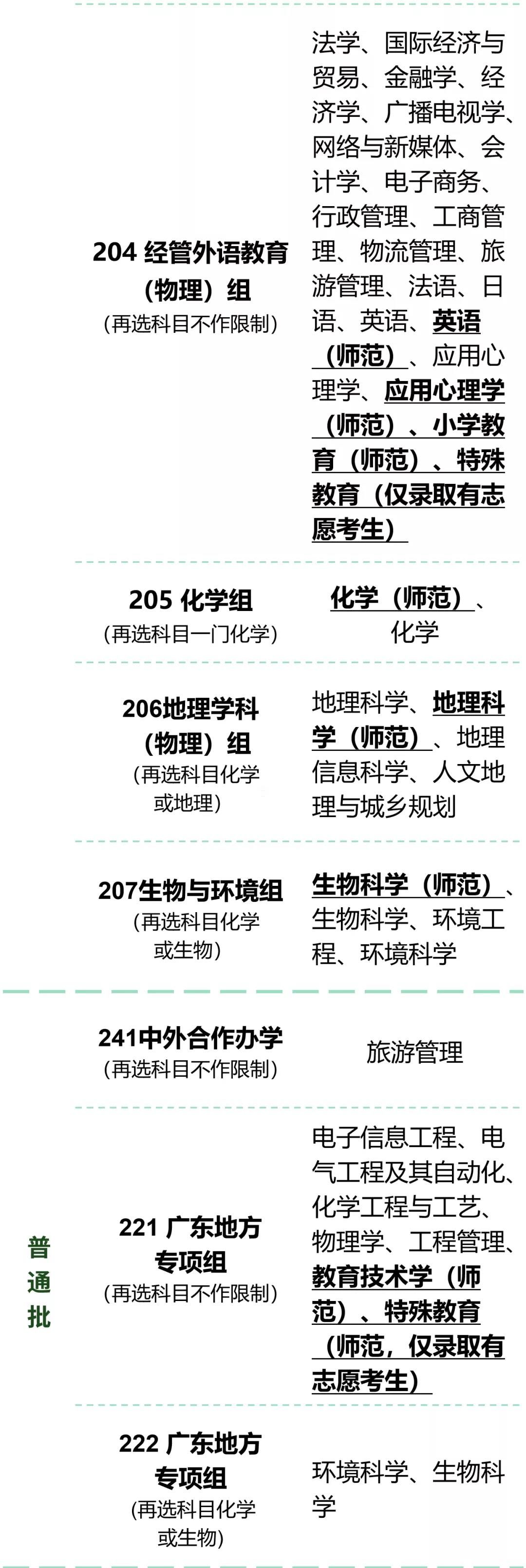 今年广东省高考实行院校专业组投档录取模式。“院校专业组”指的是某一高校对考生选考科目(包括首选、再选)要求相同的专业(类)的组合。一所院校可设置一个或多个“院校专业组”,每个“院校专业组”内可包含数量不等的专业(类)。我校为广东考生精心设置了一系列院校专业组。我校院校专业组设置凸显了“精准定位与多元选择相结合”的特点,以相同学科门类组成专业组,让考生选择精准,锁定心仪专业;以跨学院组成大类专业组,让考生选择多元化,增大录取机会。